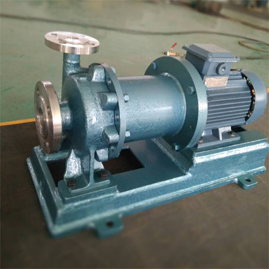 磁泵同離心泵一樣是電機驅動泵,但結構上磁力聯軸器多了關鍵,在運轉時依靠偶合器傳遞動力,帶動外磁鋼轉動,再利用磁力穿入隔離套作內磁鋼,使泵的轉子與電動機同步旋轉,在此過程中由于不存在機械接觸,故不存在泄漏的可能性。對于適合運輸的介質與離心泵類似,主要運輸貴重液體或高危度液體,具有良好的耐酸腐性能,對硬顆粒敏感,特別是含鐵成分的碎屑,會損傷泵體,如有需要可加裝過濾裝置。